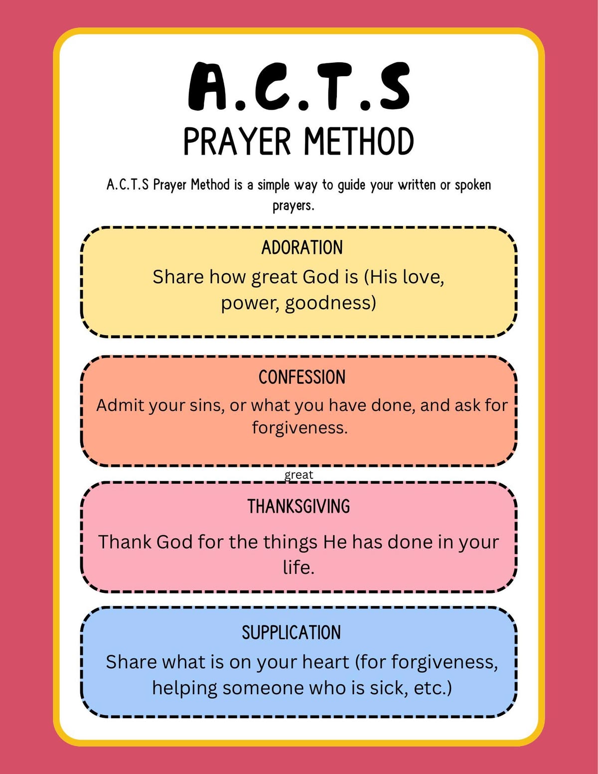 Below are the different blueprints for prayer that I shared with my students. The first one is based on The Lord’s Prayer, and other two are one’s I found on google.